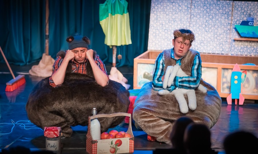 Da, dobre pol ure dolga predstava, namenjena otrokom od tretjega do sedmega leta starosti, otrok ne podcenjuje. Igra skozi medvedjo zgodbo otrokom govori, da lahko tudi sami marsikaj naučijo starše, če so pri tem vztrajni. Glasbo za predstavo je napisal Davor Herceg, scenografija, ki sta jo oblikovala Tomaž Štrucl in Inti Šraj, je preprosta, a likovno dobro izvedena. Igrače in drugi pripomočki na odru so leseni in se spogledujejo z retro oziroma vintage trendi.
