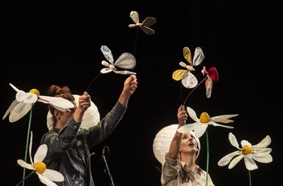 Pesniško raziskovanje življenja na travniku in ob travniških mlakah – od jutra do večera – z živo glasbo in lutkami.